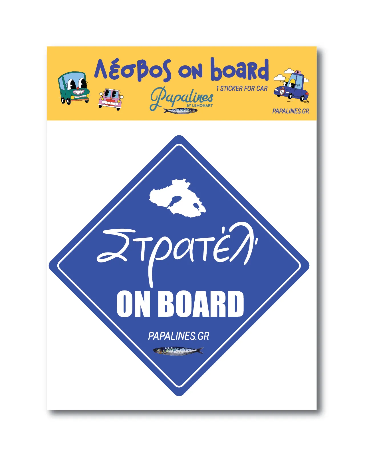 Στρατέλ’ on board! Αυτοκόλλητο αυτοκινήτου για το Στρατέλ’ σας!  Ο Στρατής είναι ενα απο το πιό γνωστά ονόματα στη Λέσβο, το οποίο δεν προέρχεται από το Ευστράτιος, αλλά από το Αρχιστράτηγος.