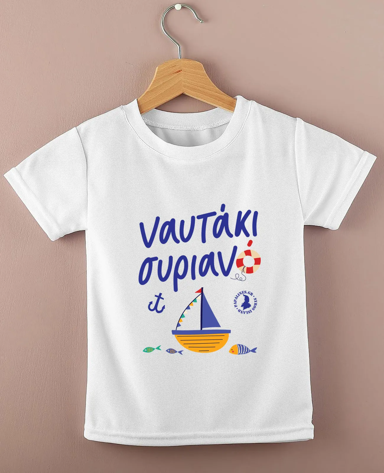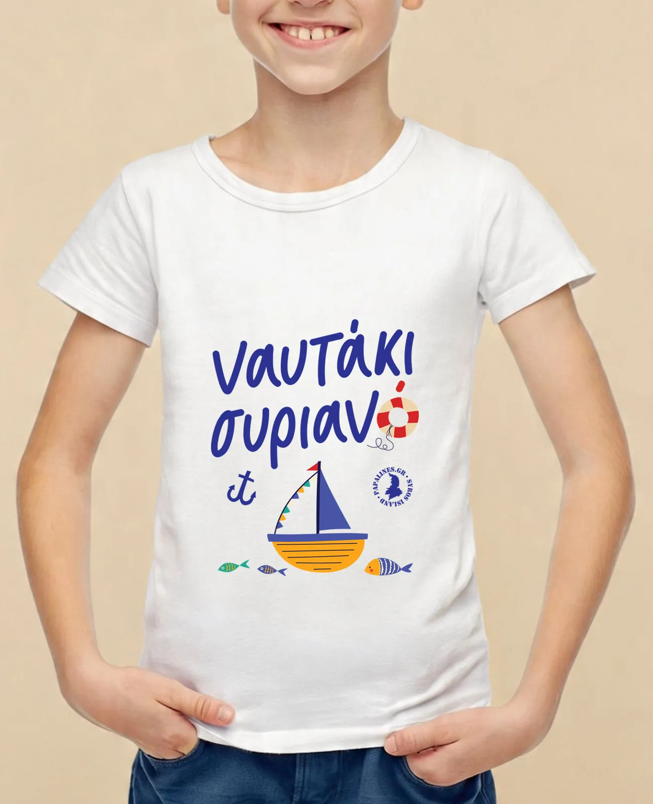 Παιδικό T-shirt Ναυτάκι Συριανό σε λευκό χρώμα.